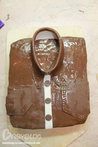 а я, кк начинающий тортодел ( хотя и кондитер по образованию))) вот такой сделала. правда почему то торопилась так) это я для себя делала. чисто потренироваться. да и красителей нет. и вообще мастику сама делала ..не грузится фотография что то. там у меня тоже рубашка..загружу как получится...