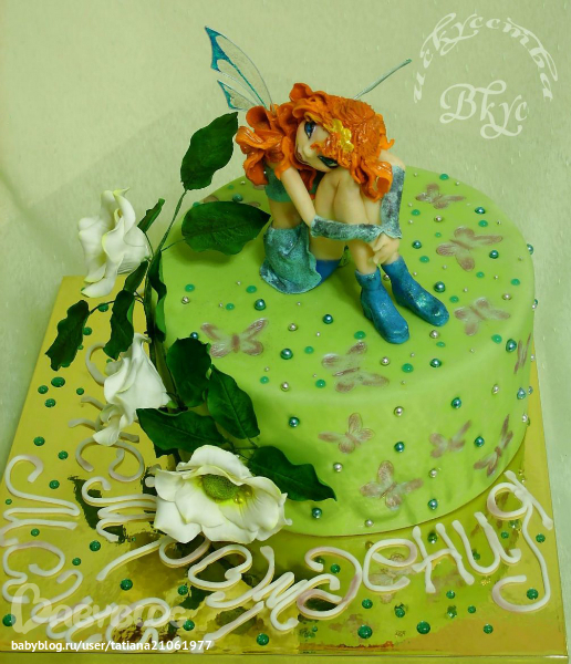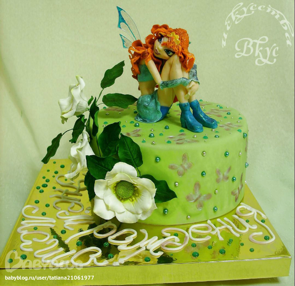 Танечка, просто БЛЕСК!!!! Шикарный тортик. Цветы новые отличные!. Сама Блум ваще отпад) И очень тортик понравился с бусиками и бабочками. Решение отличное.