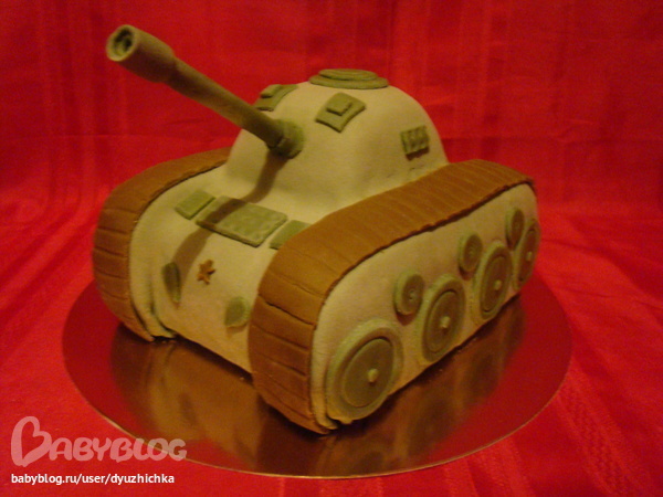 Не очень рассчитала с начинкой, торт очень высокий получился для танка... Хотела другую модель.