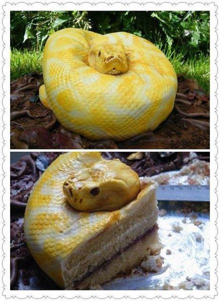 Или не заморачиваться на форме торта, просто украсить какими нибудь весёленькими змейками?