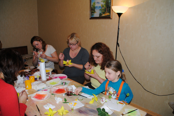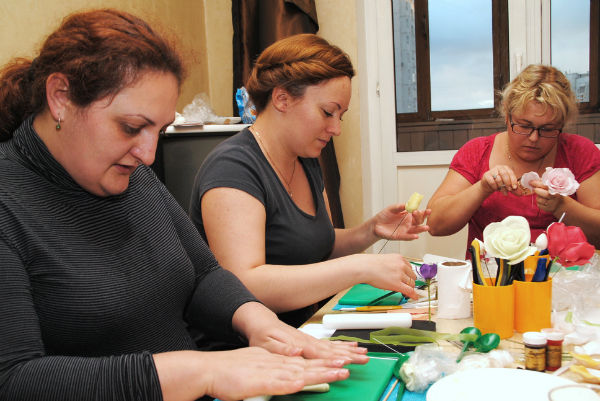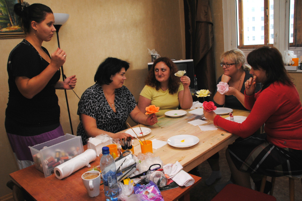 Ну и конечно об атмосфере: все 5 дней прошли очень весело и непринужденно))) Конечно работы было много, мы все устали... Хотели сделать как можно больше цветов))) И Жанна нас в этом не ограничивала))) В конце помогла нам собрать прекраснейшие композиции, я до сих пор не налюбуюсь)))