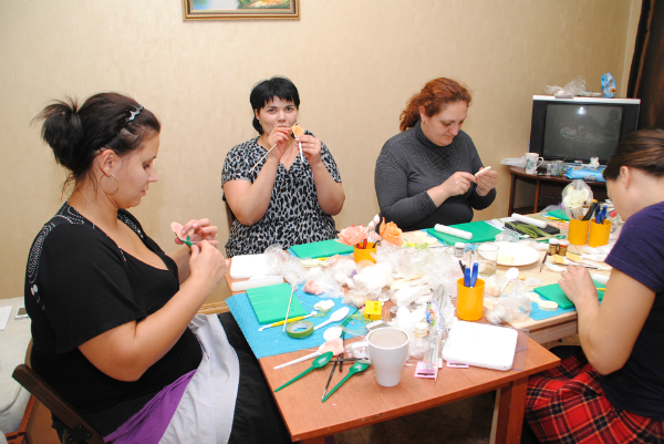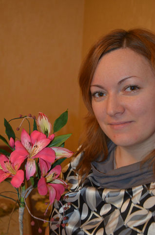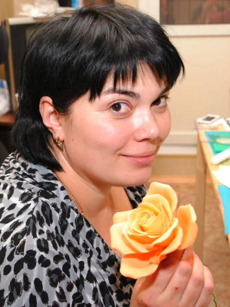 Жанна - очень увлеченный человек, настоящий мастер!! Я думаю, что только когда человек ТАК увлечен своим делом - он может действительно научить этому других... Я видела как работает Жанна - это не передать словами... Она все делает на одном дыхании... Делает цветы... создает композиции... в общем это надо видеть!)) Она передала нам огромное количество знаний и своего опыта...