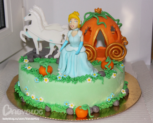 О, это наш тортик! Я в общем осталась довольна. По-моему плоские лошадки ничем не плохи, объёмные просто напросто не уместились бы) Карета просто восхитетительная! На самом деле на фото у Золушки глаза прям светятся, правда как у вампира. Но вот кто-то зрачки посоветовал, да, не помешали бы. Но дочка в восторге, а это самое главное. Ей