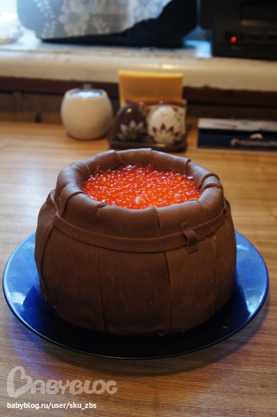 Мужувидевс утра на столесей бочонок был вшоке, когдаузнал чтоторт.ПРобовал икру, чтобыубедиться, чтоона не настоящая.