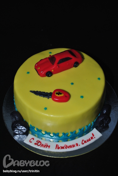 И второй - с машиной, вот когда просят - сделайте торт с машинкой - все я в ступоре, что езе можно добавить.. тем более на желтый фон...