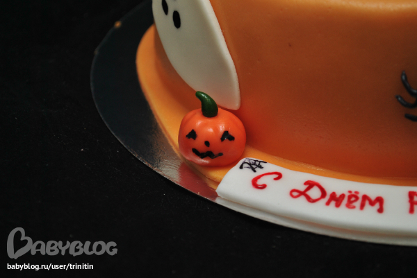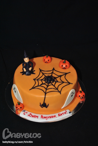 Тортик в стиле хэллоуин (очень люблю эту тему) для девушки - вес 1,5 кг. Ванильный бисквит, сливочно-сметанный крем, банан и киви