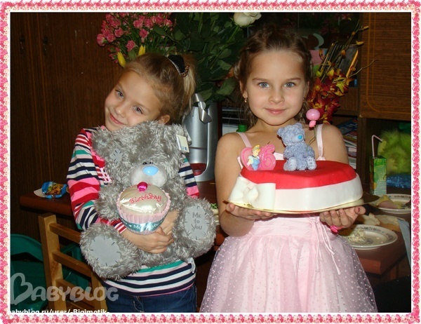 Торты детскиеТак как День Варенья дочки отмечали два дня, соответственно тортиков тоже два))) Первый дизайн разработан самой Машулей)) Сердце, бантик и Мишка -тедди и шарик)))) Шарик правда сдулся, но не беда))