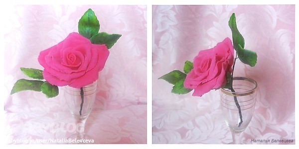 а вот сама розочка, моя первая на проволке. Муж сказал, что больше похожа на пластмассовую, но красивая))))))