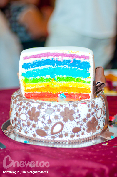 по идее можно любой крем практически. бисквиты это классические, просто с пищевым красителем. конкретно в этом торте были взбитые сливки и пропитка бейлизом. невеста и жених очень хвалили-понравился :)