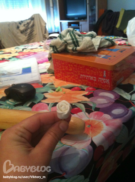 я розочки училась делать по этому мк http://www.youtube.com/watch?v=qqiNRkSQLf8&feature=youtube_gdata_player. он в четырех частях. у Эдны вообще много полезных мк. у тебя три проблемы: 1. не знаешь формулу цветка, то есть сколько лепестков в каком ряду; 2. не истончаешь лепестки, потому что используешь мастику не для цветов; 3. не прикрываешь серединку: где ты видела розу с торчащим конусом, как у каллы?
