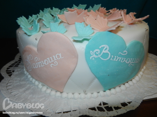 Очень срочный и маленький тортик (подруга попросила для своих друзей-молодоженов) :) 1.5 кг, ванильный с бейлизом и взбитыми сливками.