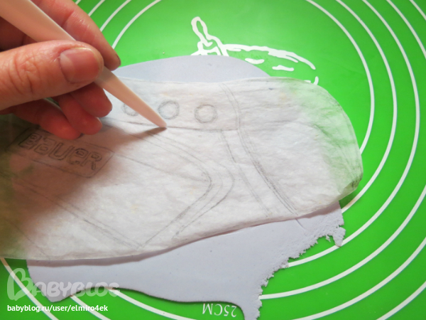 Вырезаем следующую деталь, обвожу контуры палочкой для отпечатка на мастике.