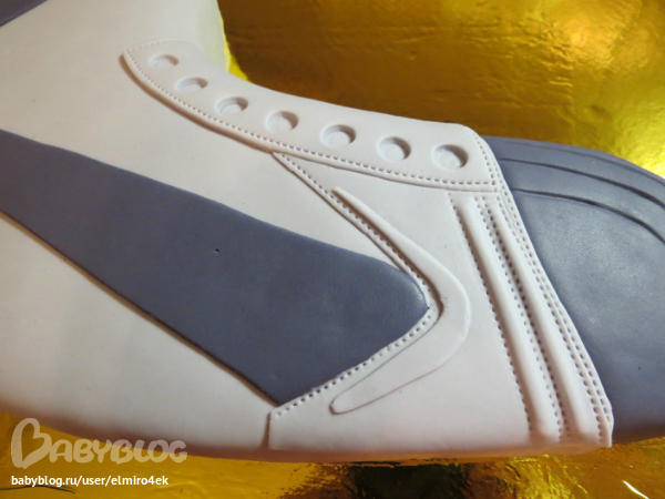 Из мастики салатового цвета просто нарезала полосочки и приклеила как шнуровку.