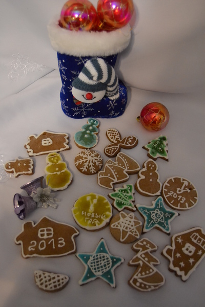 Проба перапрянички. Училась печь медовые и украшать айсингом. Работать с айсингом очень понравилось.