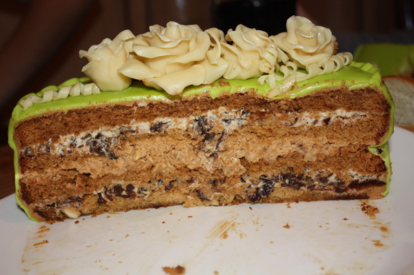 Торты для женщинПриехала к нам мамочка моя в гости и решила ей тортик сделать,а то она только на расстоянии на мои тортики смотрит.И вот он - простой медовичёк ,крем сметанный с черносливом и сметана с варёнкой и миндалём.
