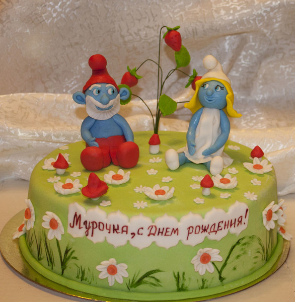 Да лана девоньки уж - конечно не оригинальные но похожи - тем более знаем по чём пуд лиха - с опытом и временем можно сделать и супер оригинальные - а в целом милый тортик и смурфы!