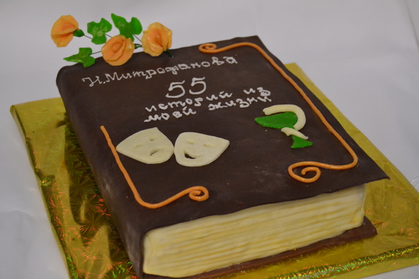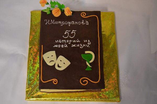 для моей мамули. Она всю жизнь работает в медицине и играет в театре. Утром повезу поздравлять именинницу. Внутри медовик, сметанный крем, грецкие орешки и чернослив