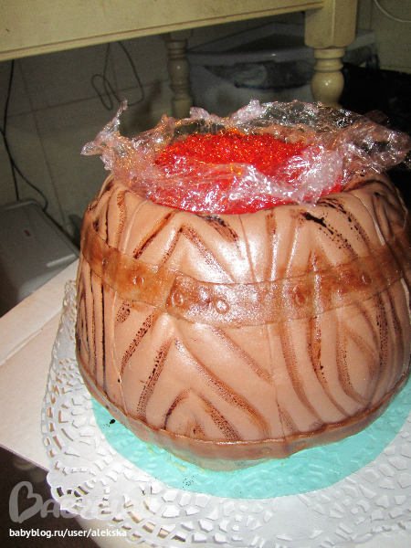 Сашенька, умничка!!! Икорка и тортик очень хорошие получились!!! У меня все руки до боченка не дойдут, очень мечтаю его сделать...