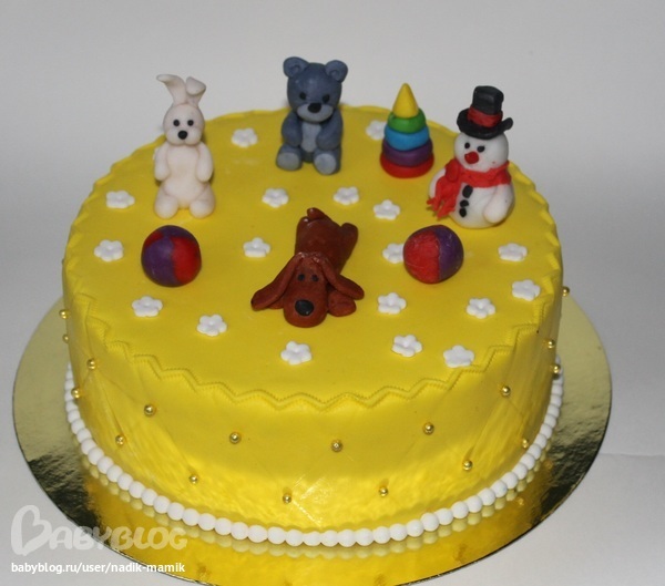 Ну и просто тортик с игрушками, правда здесь результатом не очень довольна, в нужный вес не укладывалась, поэтому пустынно здесь и одиноко. 2,5 кг (с перевесом)