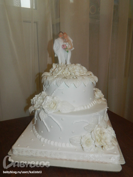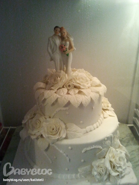 Торт "Свадебный" верх-бисквит с йогуртовым суфле (клубника), низ- сливочный бисквит, крем заварной, ванильный.