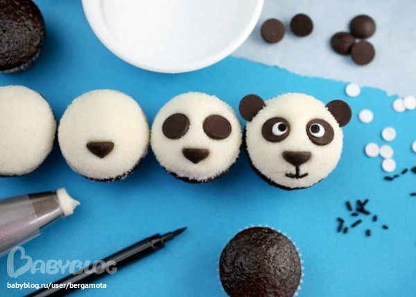 Аааа, на глазках да, мастика наверное) На которой фломастером нарисовали зрачки....Классные пандочки)