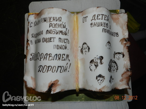 Хочу выразить огромную благодарность Юле( не могу вставить аваторку ) http://www.babyblog.ru/user/lenta/jobtop2005.Заказывали тортик на 85 летие прадедушки.... Получилось все отлично и очень очень вкусно.....гости и имениник были в восторге,,,