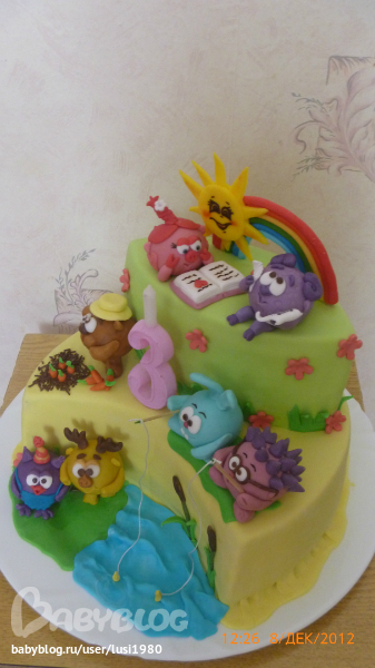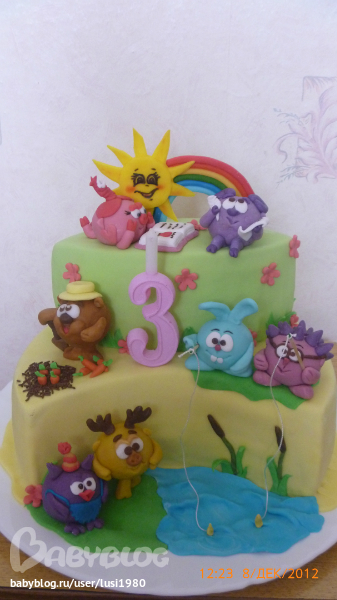 Торты детскиеДелала на ДР дочке её любимых смешариков. Фигурки я уже выкладывала, теперь сам торт: