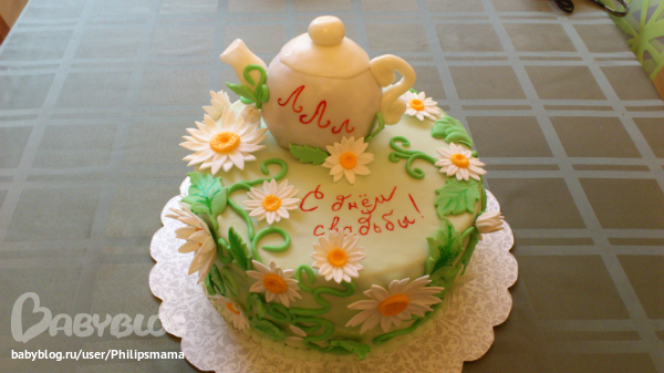 Торты тематическиеТорт на годовщину свадьбы 9 лет - свадьба фаянсовая или ромашковая! Хотелось соединить и то и другое. На чайнике инициалы член