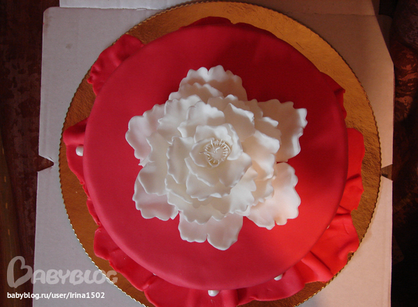 Торты для женщинЭто мой седьмой тортик. Решила попробовать новые вырубки для больших цаеточков и впервые сделать юбочку (такую же рваненькую как и лепесточки)... но, получилось не очень, сама недовольна. Пока обтягивала торт, видимо, на краях мастика подсохла, стала морщинистой и сложно было с ней что либо сделать, такие-то мелкие-мелкие трецинки тут же появлялись (впервые такое, раньше таких проблем не было).