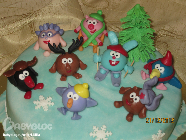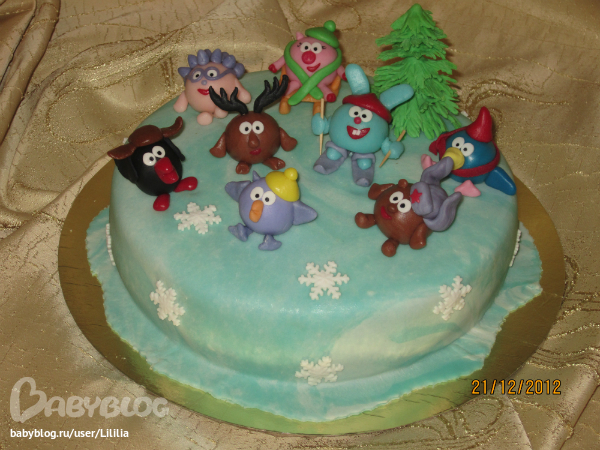 Торты детскиеСовместная работа. Фигурки делала я, а тортик Ленка. Это они якобы на льду. Внутри ванильный бисквит, сливочный крем, ананас, киви, персик. Вес 2,600