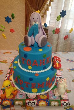 Торты детскиеК моему величайшему сожалению, мне сфоткать его не удалось в итоге пока только вот такое фото с праздника сделанное заказчицой на телефон. Соста меняли, раз 20 точно, в итоге, 1 ярус - шоколадно-банановый, 2 ярус - прага. Качество фота не очень, профессиональные фото по словам заказчицы будут только недели через 2. Вес около 8 кг.