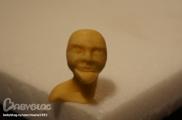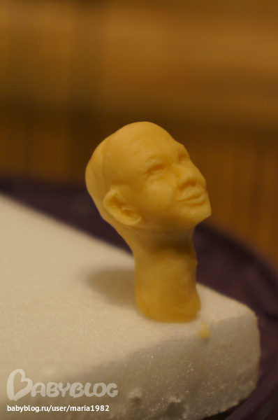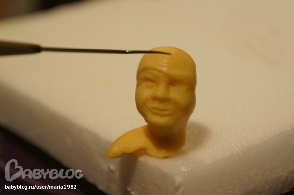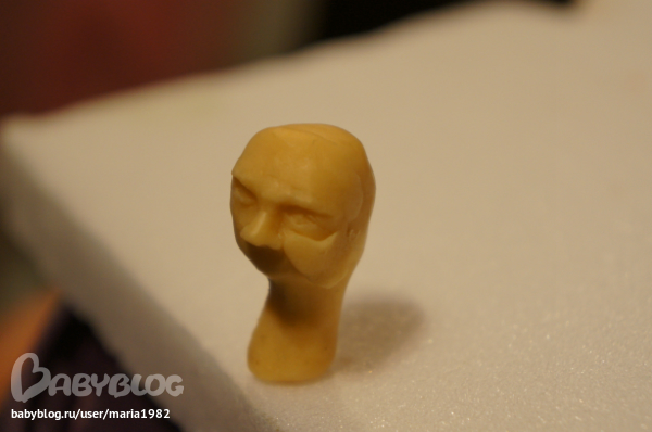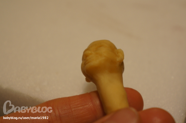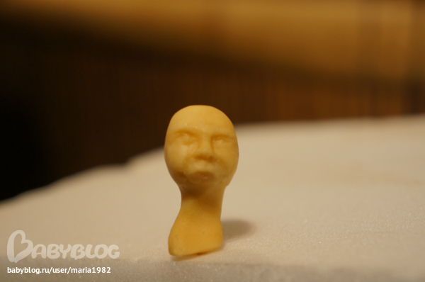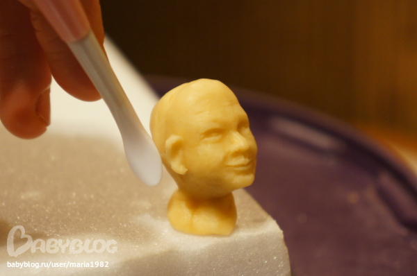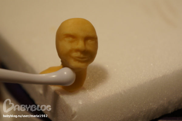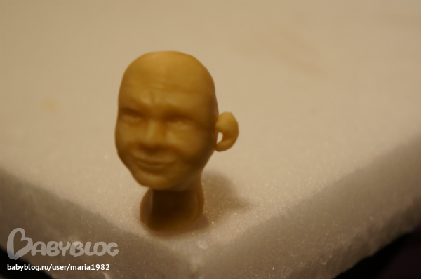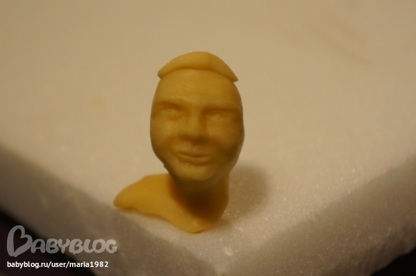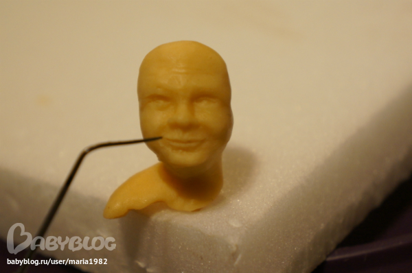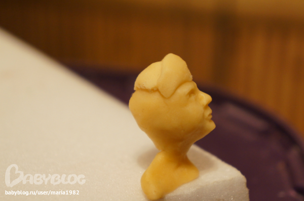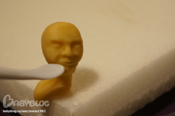 Мария, огромное вам спасибо за МК! Лепила в первый раз лицо, вот что получилось. Скажите пожалуйста, дальше надо вылепить тело, на проволке или как? и мордаху прикрепить к телу как после высыхания. Помогите пожалуйста. Фигурку хочу просто посадить на край торта.