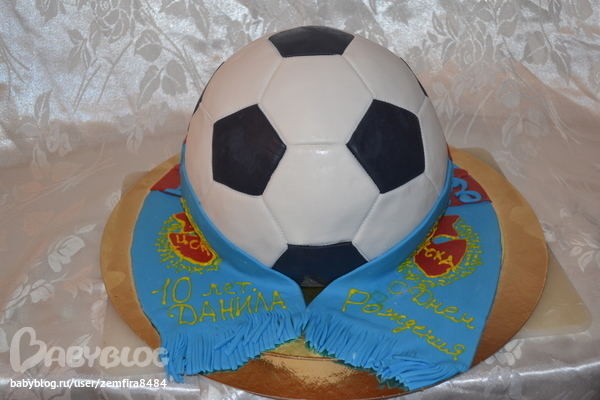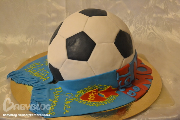 Классный мячик!!!!! Я правильно поняла,что покрыт белой мастикой и потом чёрные кусочки сверху? Шарф интересненький!