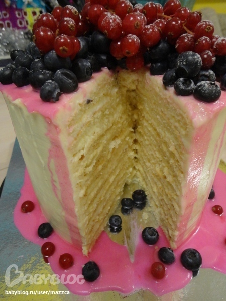 Спасибо!! Рисовала круг 20см ( дно от разъемной формы), ложила по 2 ст.ложки полных с горкой, потом обрезала по 16 см форме. На этот торт ушло две нормы теста.