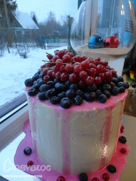 Украшение тортов кремом,шоколадом, фруктамиЕще был торт без мастики. Т.к. времени было в обрез. Внутри "Молочная девочка"+ крем маскарпоне со сгущенкой. Вес 2,100. Диаметр 16см. Высота 13см.