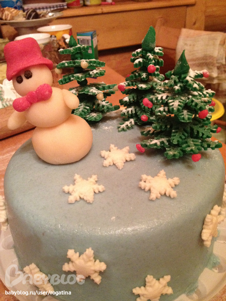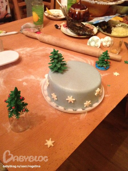 К Новому Году у нас был отличный красивущий торт сделанный своими руками!))