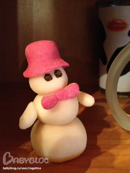 Делала 3 дня фигурки)) реально делать все за 1 час можно. Просто я нервнисала что не успею и делала поэтапно (когда есть время) сначало снежинки измпршмеллоу, потом снеговика из него же.