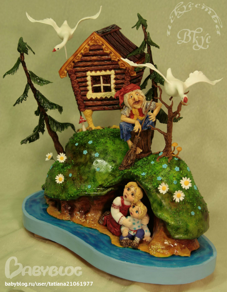 До чего же интересно мне в этом жанре работать)) Лепи в своё удовольствие)) Скоро рузучусь делать тортики для взрослых))) Вес 7500, "кисельные берега", где сестрица с братцем прячутся - "муравейник", опушка под избушкой - ванильный бисквит, маскарпоне, свежая клубника.