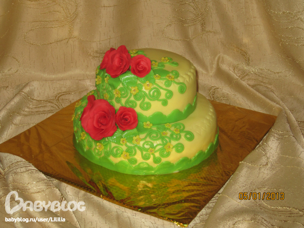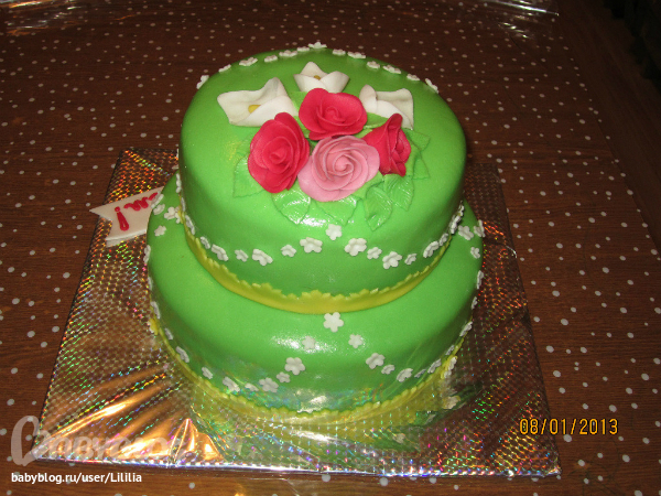 Второй тортик с завитулями симпотный ))А вот на первом не пойму.... Лианочка, вы цветочки не просушили? Почему они так (как бы сказать...) улеглись на тортике? Я сама-то с цветами на "ё-п-р-с-т" ))) Вот и интересуюсь )))
