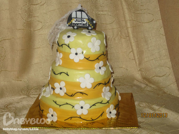 Торты свадебныеРабота сестры. Внутри нижний - зебра, второй ярус - белый бисквит, верхний - шоколадный с орехами. Начинки ананас, персик, клубника. Вес 8 кг. Пример взят с просторов интернета.