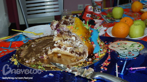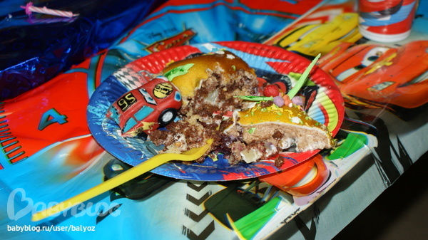 Конечно, и оооочень долго, он ждал молнию Маквина и компанию :). Сразу скажу, что компания на торике не в полном составе, - перед праздником младшего, у старшего была присяга Родине ( я не расчитывала, что это торжество назначат в этот день), - он у меня теперь боец армии России, и, весь день, пока я была на присяге, развлекал сынишку любимый папа. Не знаю, как, но Тимурчик поздравил себя сам и скушал Холли и шерифа:)( на здоровье, сладенький). Несколько раз порывался до этого скушать Маквина, но он , всё же, дожил до тортика :)))