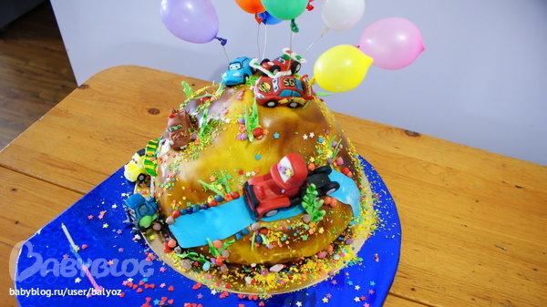 Сам тортик собирался очень быстро ( как всегда, сапожник без сапог). И как я не старалась приготовиться заранее, ничего не вышло... украсила за 1 час... планировалась и башня из шин... и отель "колесо" ... и ... да много чего, но детки остались довольны, родители тоже...
