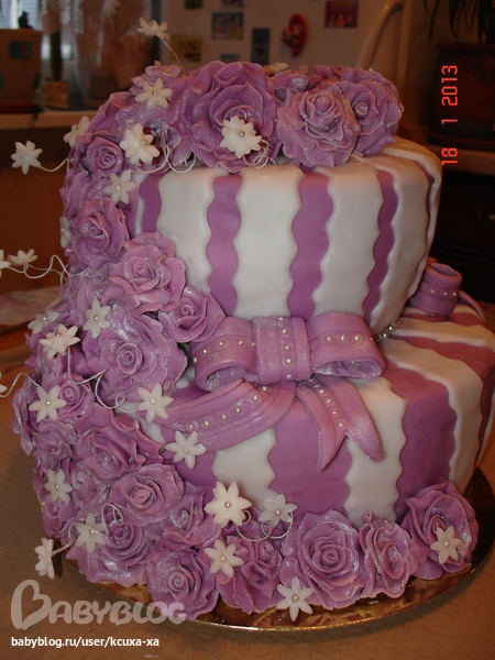 этот торт был сделан с фото, так захотели заказчики, и цвет и полоски и розы.на вкус и цвет...