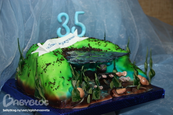 Торты для мужчинВес 3,300.Торт для любимого мужа на юбилей 35 лет.Сам торт несобиралась делать,но как услышала"А ЧТО ТОРТА НЕБУДЕТ?ВСЕМ ДЕЛАЕШЬ,А МНЕ НЕТ?"Ну и давай быстренько его делать,начала я его печь в 16,00-и в 4 утра он был готов,охотника лепила в 3 ночи)))У мужа хобби-подводная охота.