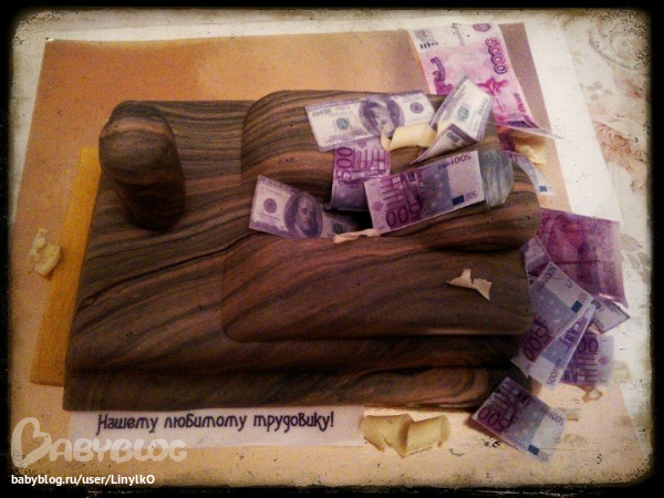 И вот даже этого сурового учителя труда, неупотребляющего сладкое, торт задел за живое, как говорится))) Нафотографировал торт и на работу пошел хвалиться)))