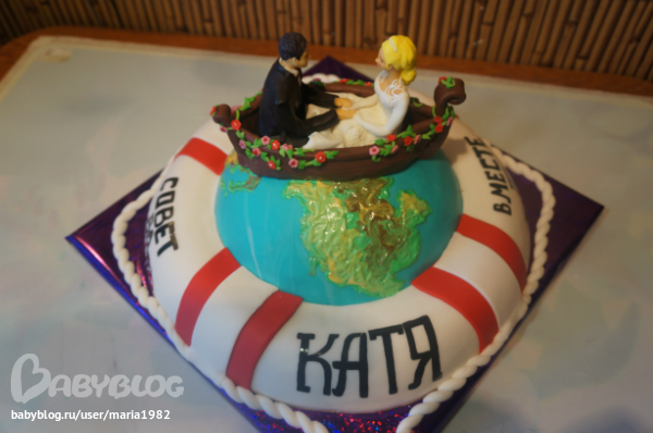 Машуня!!! Супер!!!! Тортик очень хороший! Нравится мне эта идея - "ты мой спасательный круг" :))) Для свадьбы очень нестандартно. Молодцы ребята, что решились на такой креативный торт! Думаю, гостей удивили :))))
