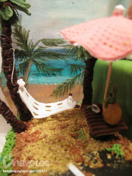 Вот такой в общем остров-мечты из ванильного шифона, бананово-ванильный йогурт+банан, клубничный йогурт+клубника пюрированная, под мастику клубничный ганаш. машина- пирожное картошка.