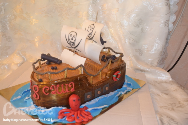 спасибо!!! с парусами я чет намудрила на этот раз, и шпажки короткие оказались, и мастика не сохла, и разурасить не удалось. и про флаг забыла. спасибо за совет с шариками, теперь буду знать, а то крепила на айсинг, а он не держал