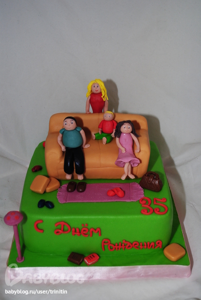 Первый, верхний тортик мой. Спасибо огромное Ольге, торт ооочень вкусный, а оформление и дизайн всех просто шокировало. Я думаю, что Оля в каждый свой торт вкладывает частичку своей души, все сделано очень аккуратно, все продумано: вокруг дивана разбросаны игрушки, стоят тапочки, абажур, женская сумка, книги. Супер! Буду ее постоянной клмиенткой. СПАСИБО!!!