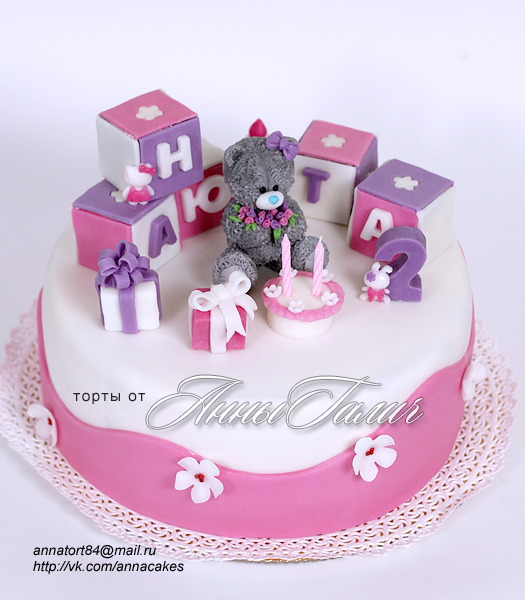 Торты детскиеТорт на годик мишка с кубиками. Вес 3,5 кг. Внутри: пьяная вишня.
